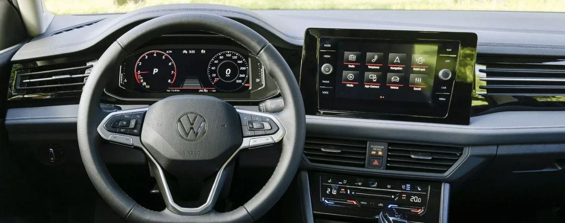 La Volkswagen Jetta est équipée d’un écran tactile de 8 pouces compatible avec Apple Carplay et Android Auto. Un système de 4 ou 6 haut-parleurs est disponible selon le modèle, avec commandes vocales incluses.